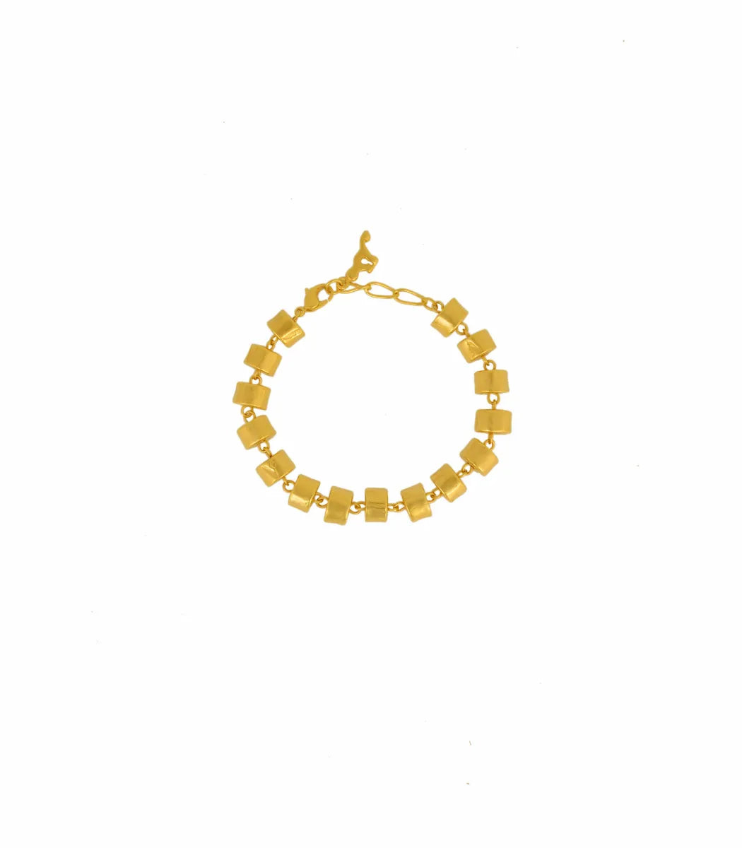 Inspired by the goldsmithing of the CALIMA culture, this bracelet is composed of articulated square links that evoke the geometric forms present in their ancestral pieces. Its minimalist and symmetrical design makes it a versatile accessory with strong historical character.
