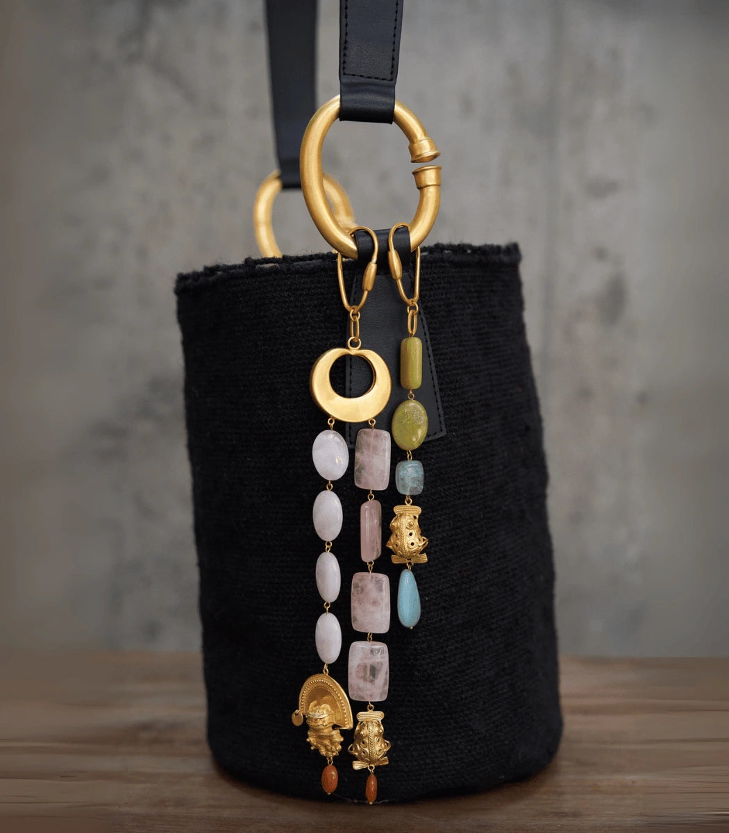 This keychain blends ancestral ZENÚ symbols with green and blue semi-precious stones. A handcrafted piece that embodies the wisdom of the earth and the fluidity of water—designed to accompany you each day with purpose.