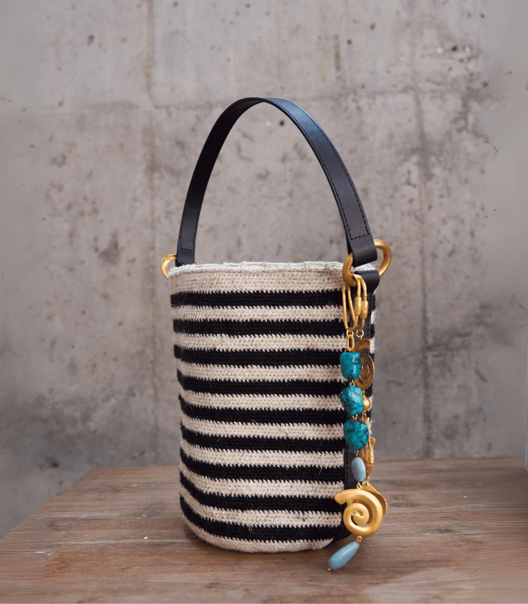 This keychain features a golden spiral paired with turquoise and amazonite stones, evoking the cyclical paths of life in the ZENÚ worldview. The aqua-toned semi-precious stones lend a natural, protective presence, transforming this piece into a modern and powerful talisman.
