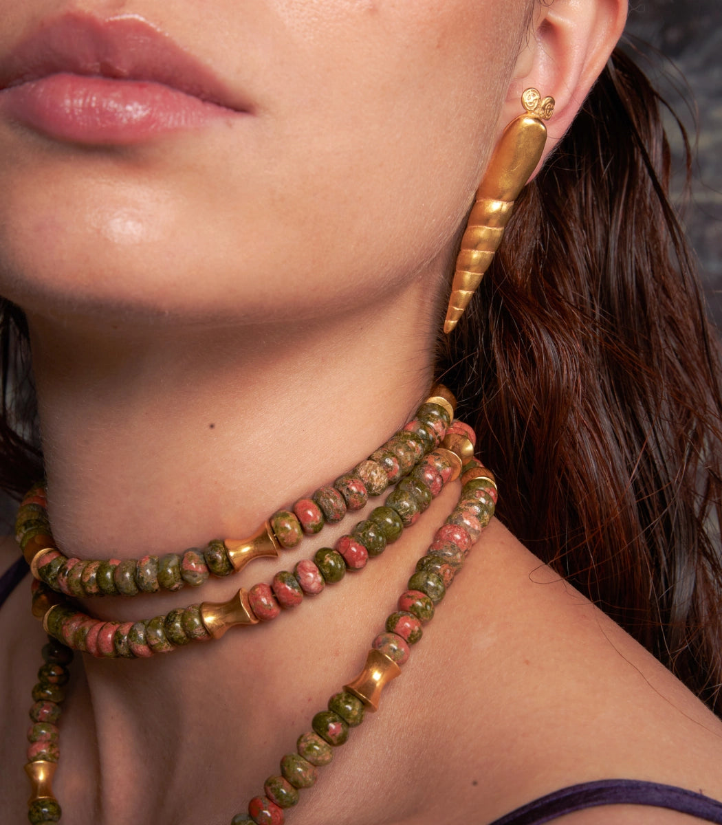This is a collection of contemporary relics: bold, sculptural pieces that feel as though they’ve been resting underwa- ter for centuries.