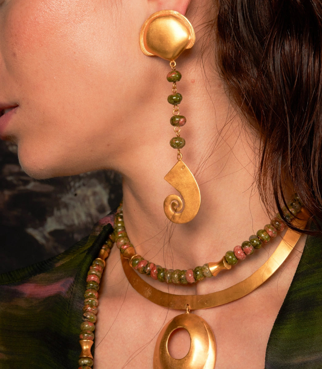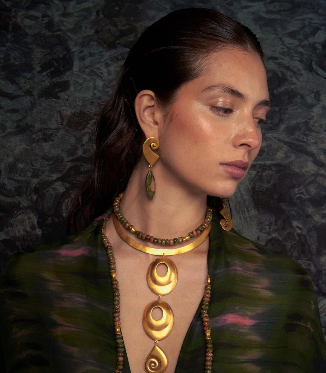 The Coaya Earrings draws inspiration from the ZENU culture, reflecting its symbolic richness through handcrafted forms and details that connect tradition and modernity.