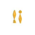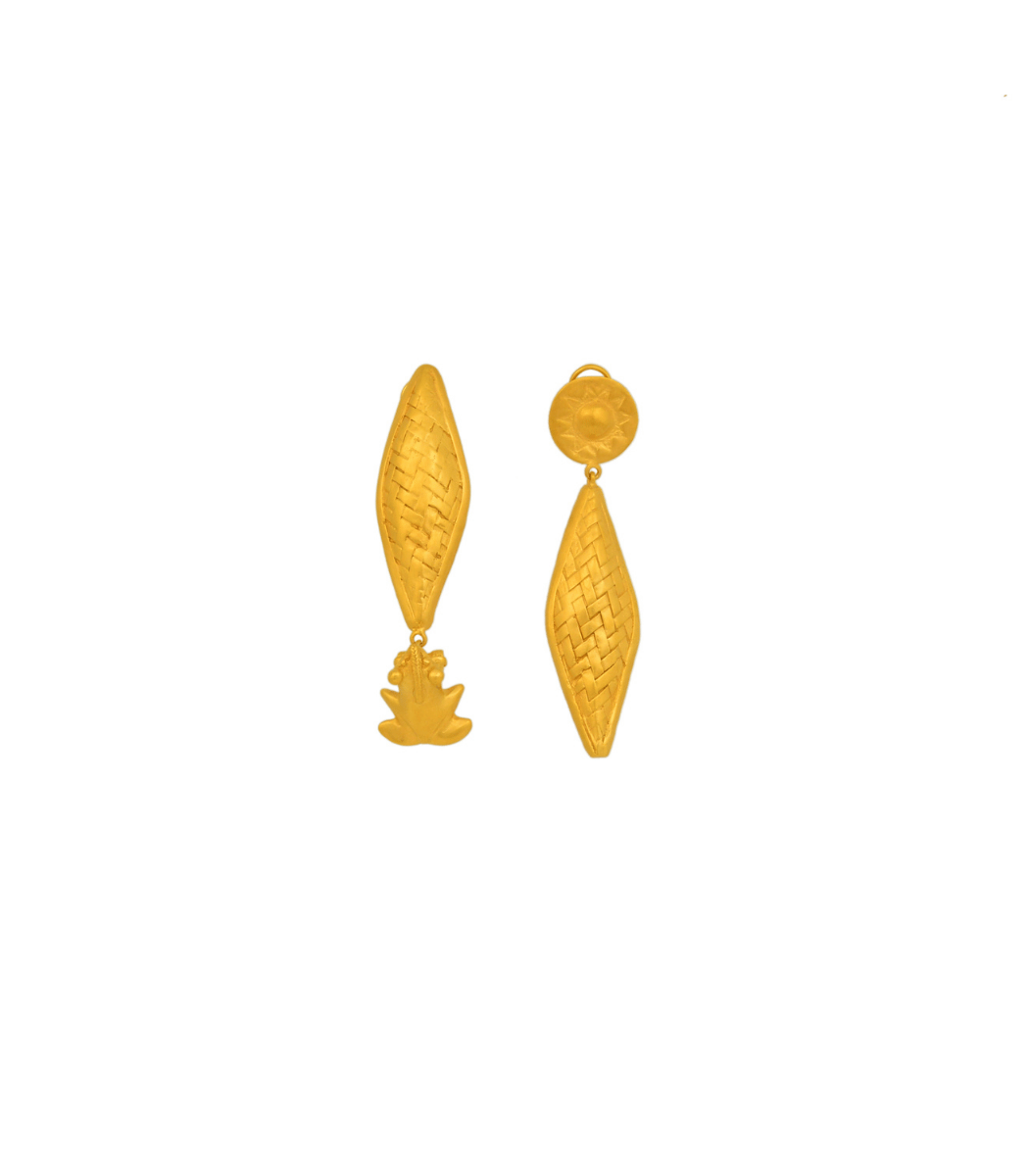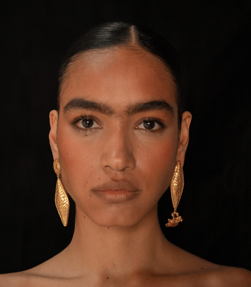 Inspirados en las trenzas ceremoniales y elementos de ornamento de la cultura TAYRONA, estos aretes alargados evocan fuerza y herencia. Un diseño que estiliza el rostro y captura la atención.
