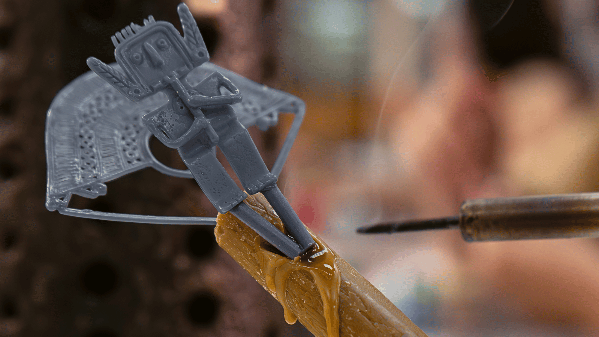 Una vez que se ha seleccionado el molde, se inyecta cera caliente y el artesano lo examina.