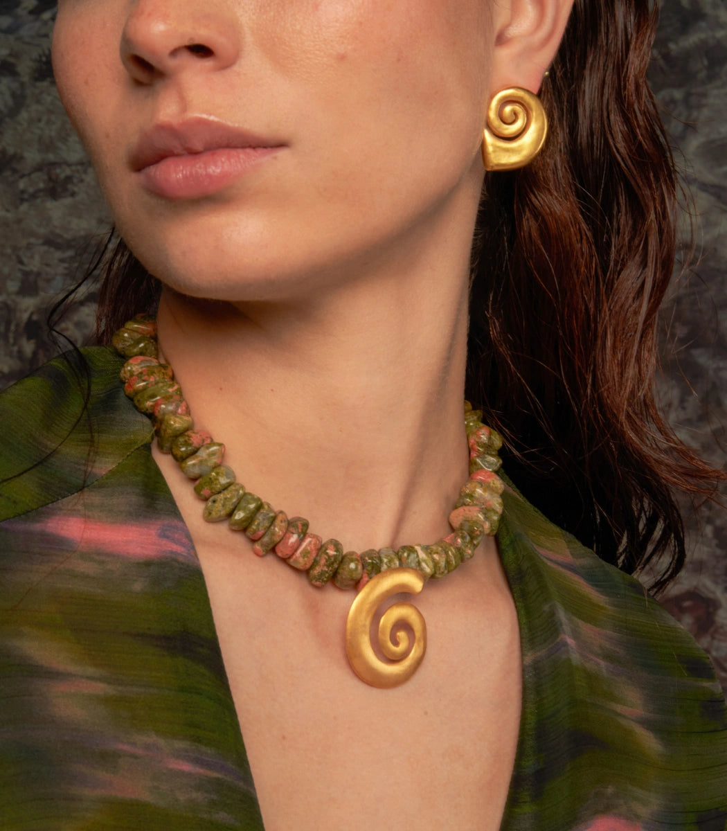 All pieces are crafted in brass with a 24kt gold plating, finished in matte gold, and handmade in Colombia.